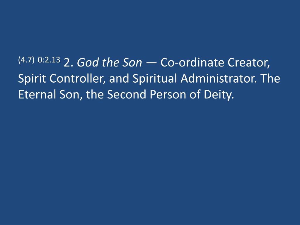 (4.7)0:2.13 2. God the Son — Co-ordinate Creator, Spirit Controller, and Spiritual Administrator. The Eternal Son, the Second Person of Deity.
