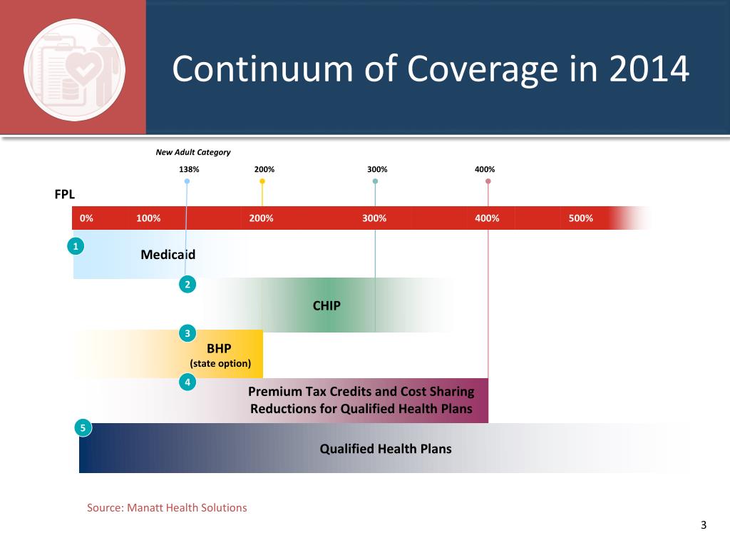 Continuum of Coverage in 2014 3 Source: Manatt Health Solutions