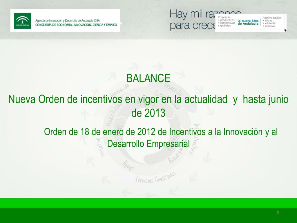 BALANCE Nueva Orden de incentivos en vigor en la actualidad y hasta junio de 2013 Orden de 18 de enero de 2012 de Incentivos a la Innovación y al Desarrollo Empresarial