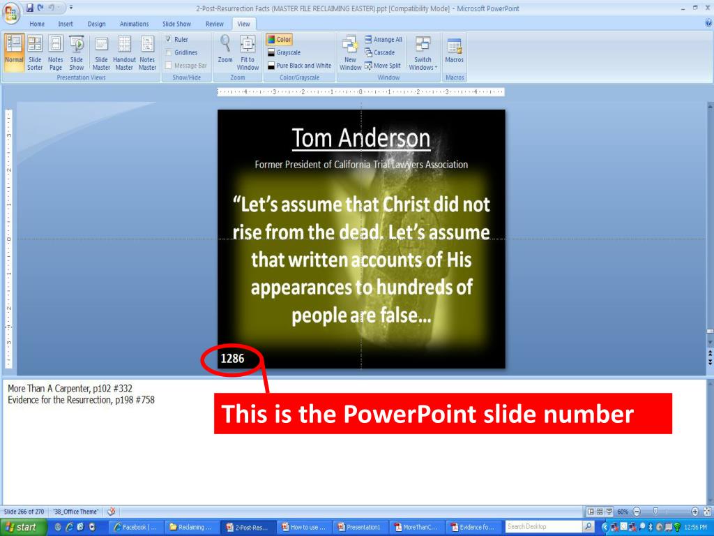Legend. TS ¶ 123 = Transcript Paragraph Number 123 MTAC = More Than A Carpenter E4R = Evidence For The Resurrection [ppt123…] = PowerPoint Slide Number. How to use the outlines…. This means that Powerpoint Slides 1348-1357 illustrates the Unknown Tomb Theory.