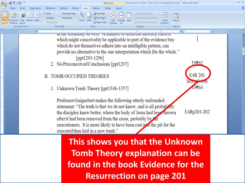 This shows you that the Unknown Tomb Theory explanation can be found in the book Evidence for the Resurrection on page 201