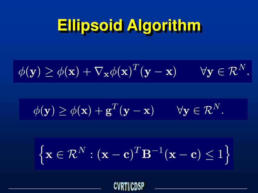 Subgradients Ci Ci+1 + + Ei Ei+1 Constraint set Normal hyperplane Ellipsoid Algorithm