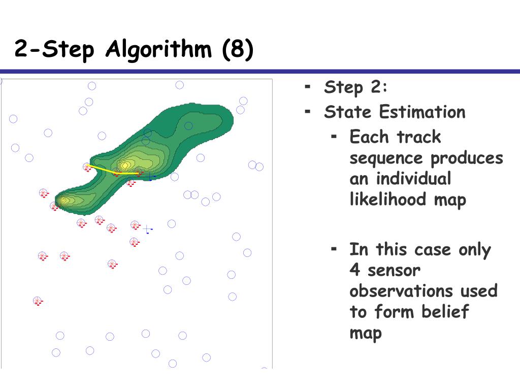 2-Step Algorithm (8) • Step 2: • State Estimation • Each track sequence produces an individual likelihood map • In this case only 4 sensor observations used to form belief map