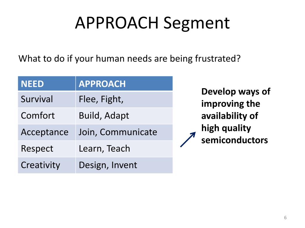 APPROACH Segment What to do if your human needs are being frustrated? Develop ways of improving the availability of high quality semiconductors