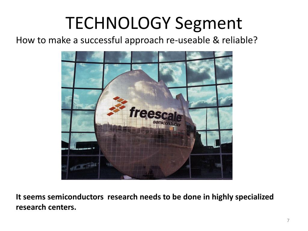 TECHNOLOGY Segment How to make a successful approach re-useable & reliable? It seems semiconductors research needs to be done in highly specialized research centers.