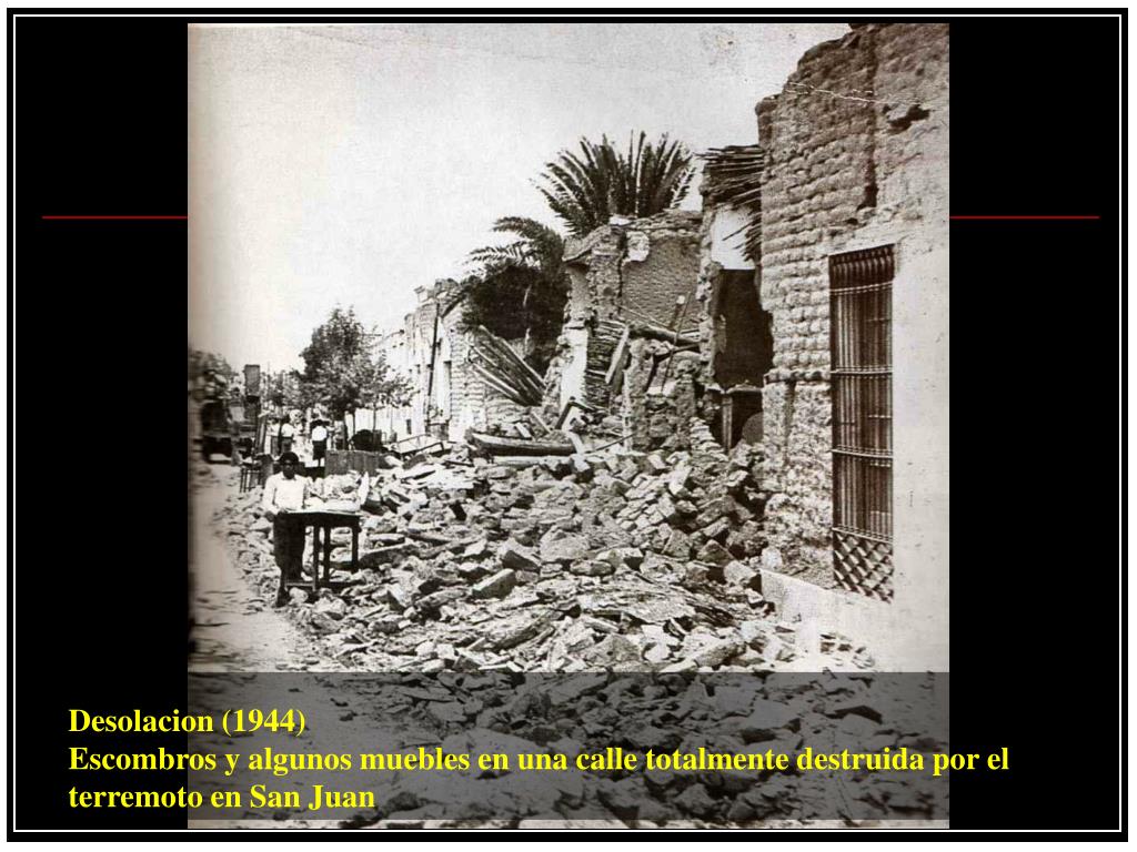 Desolacion (1944) Escombros y algunos muebles en una calle totalmente destruida por el terremoto en San Juan