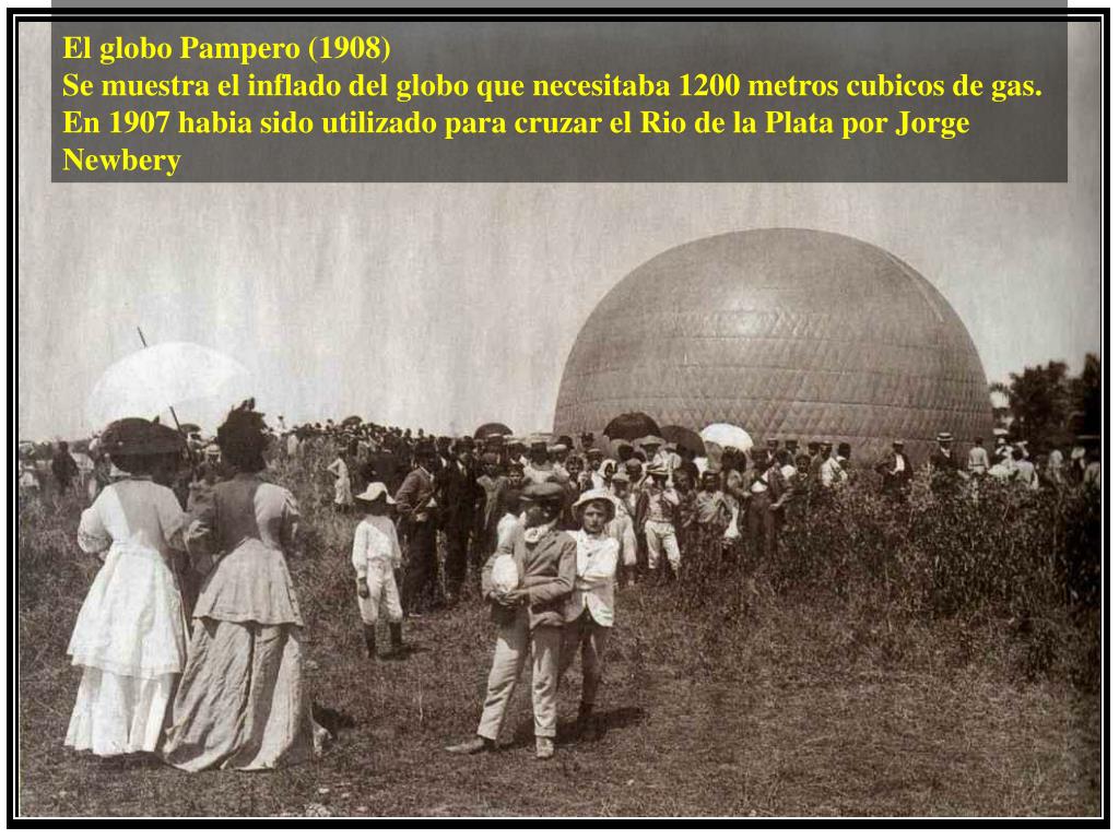 El globo Pampero (1908) Se muestra el inflado del globo que necesitaba 1200 metros cubicos de gas. En 1907 habia sido utilizado para cruzar el Rio de la Plata por Jorge Newbery