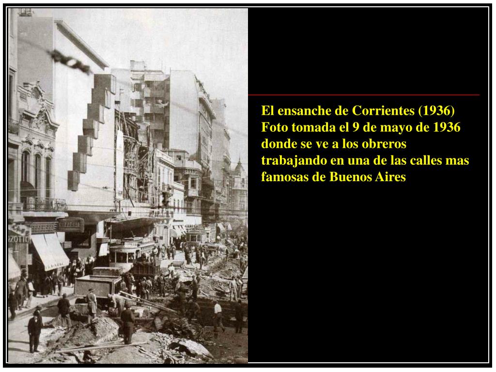 El ensanche de Corrientes (1936) Foto tomada el 9 de mayo de 1936 donde se ve a los obreros trabajando en una de las calles mas famosas de Buenos Aires