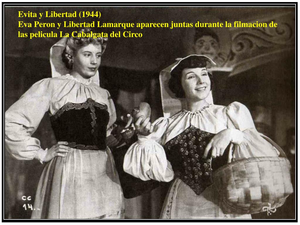 Evita y Libertad (1944) Eva Peron y Libertad Lamarque aparecen juntas durante la filmacion de las pelicula La Cabalgata del Circo