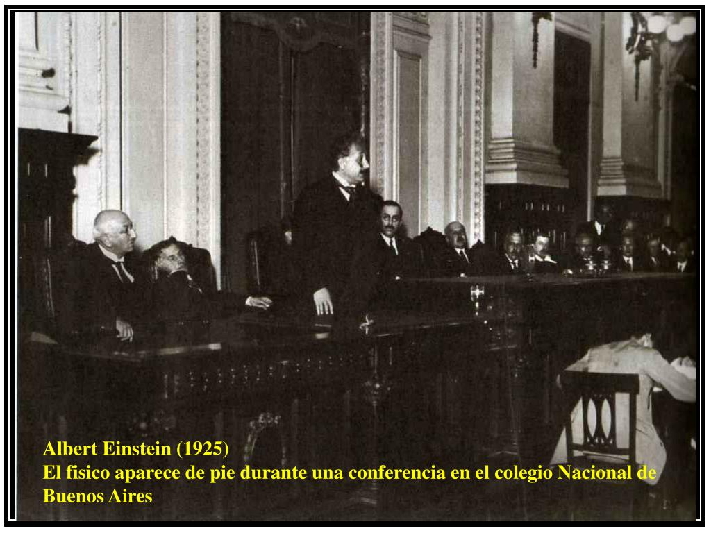Albert Einstein (1925) El fisico aparece de pie durante una conferencia en el colegio Nacional de Buenos Aires