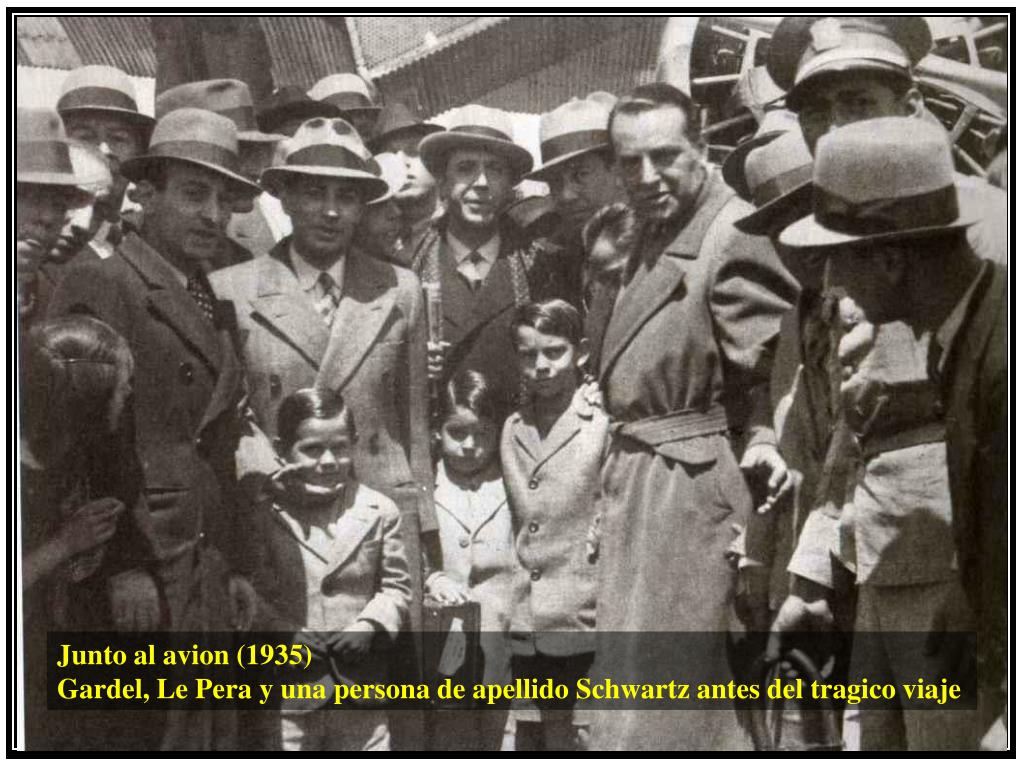 Junto al avion (1935) Gardel, Le Pera y una persona de apellido Schwartz antes del tragico viaje