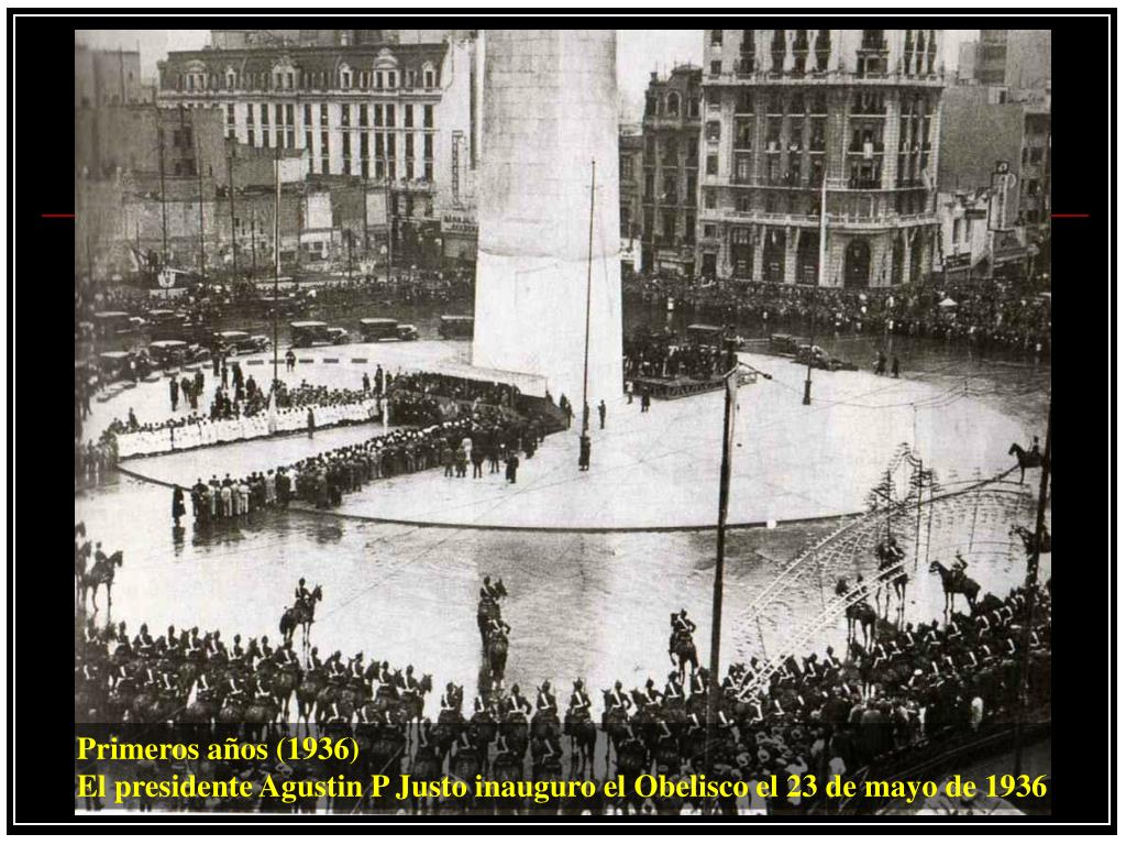 Primeros años (1936) El presidente Agustin P Justo inauguro el Obelisco el 23 de mayo de 1936