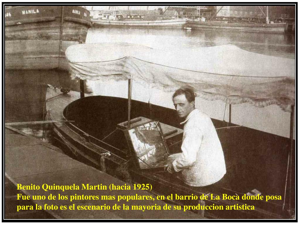 Benito Quinquela Martin (hacia 1925) Fue uno de los pintores mas populares, en el barrio de La Boca donde posa para la foto es el escenario de la mayoria de su produccion artistica