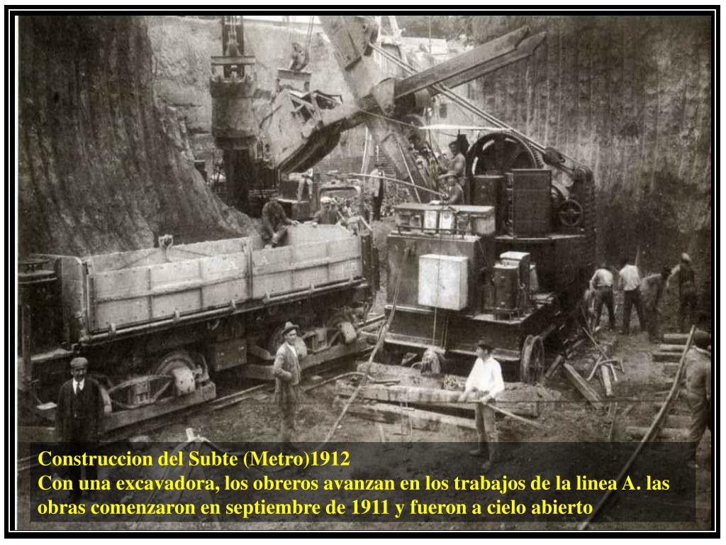 Construccion del Subte (Metro)1912 Con una excavadora, los obreros avanzan en los trabajos de la linea A. las obras comenzaron en septiembre de 1911 y fueron a cielo abierto