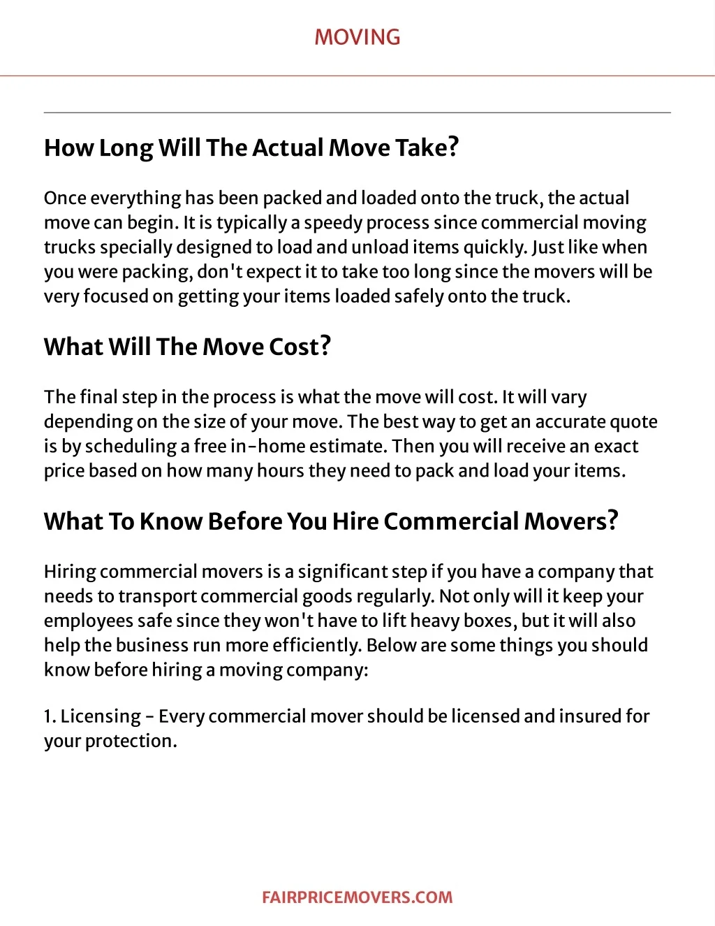 HOWF ARINADV ANCE TOHIRECOMMER CIAL MOVERS? F A IRPRIC E MOVE RS. C OM