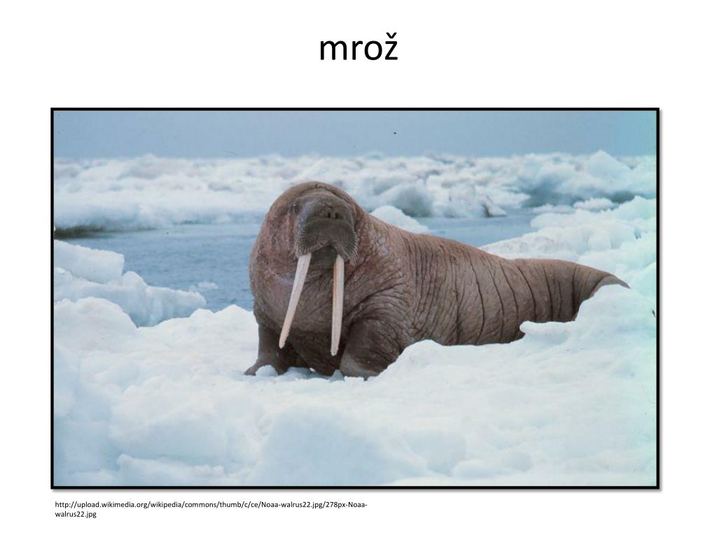 mrož http://upload.wikimedia.org/wikipedia/commons/thumb/c/ce/Noaa-walrus22.jpg/278px-Noaa-walrus22.jpg