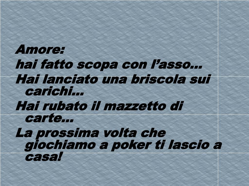 Amore: hai fatto scopa con l’asso… Hai lanciato una briscola sui carichi… Hai rubato il mazzetto di carte… La prossima volta che giochiamo a poker ti lascio a casa!
