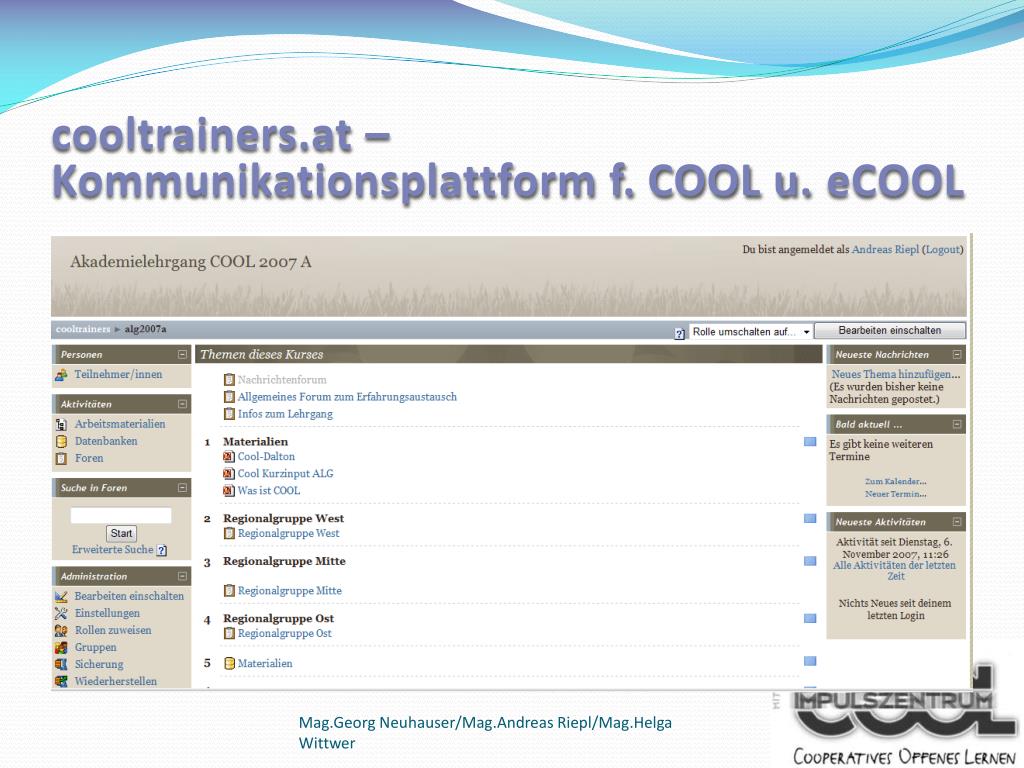 cooltrainers.at – Kommunikationsplattform f. COOL u. eCOOL Mag.Georg Neuhauser/Mag.Andreas Riepl/Mag.Helga Wittwer