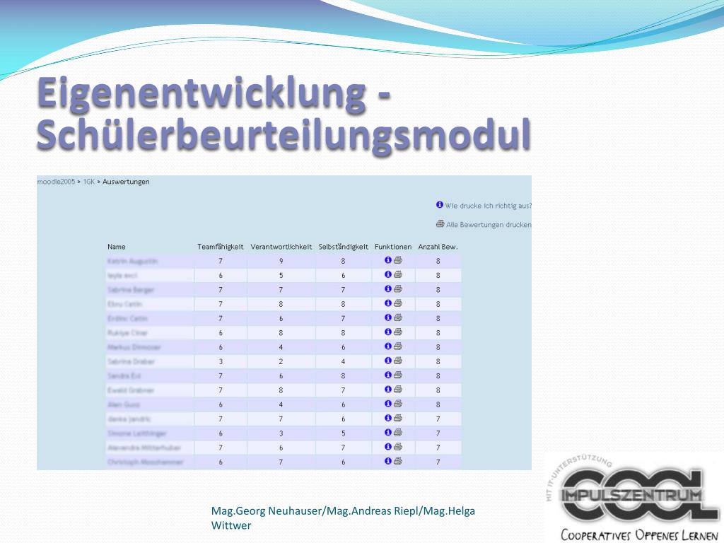 Eigenentwicklung - Schülerbeurteilungsmodul Mag.Georg Neuhauser/Mag.Andreas Riepl/Mag.Helga Wittwer