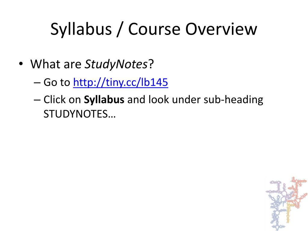 Syllabus / Course Overview • What are StudyNotes? • Go to http://tiny.cc/lb145 • Click on Syllabus and look under sub-heading STUDYNOTES…