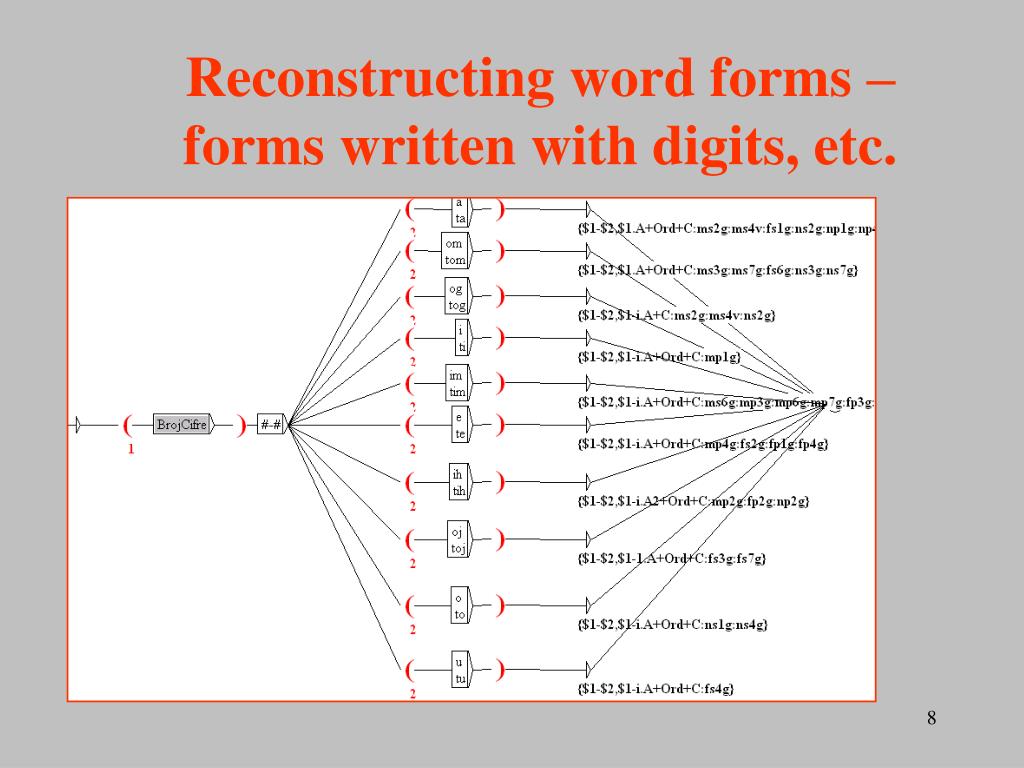 Disambiguation process • Reconstructing word forms • Using filter dictionaries • Using restricted dictionaries • Using dictionaries of compounds • Using disambiguation grammars
