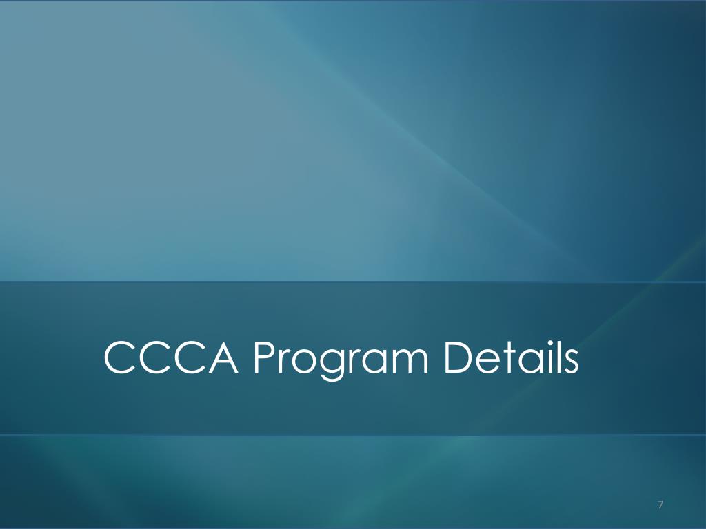 CCCA Fees • Designed to be affordable: $150 • $50 for certification program, including credentialing, badge – 2 year renewal cycle • $100 for exam • Initial administration will be discounted for a set period of time • Subsequent CCCA renewal: $35 / 2 years