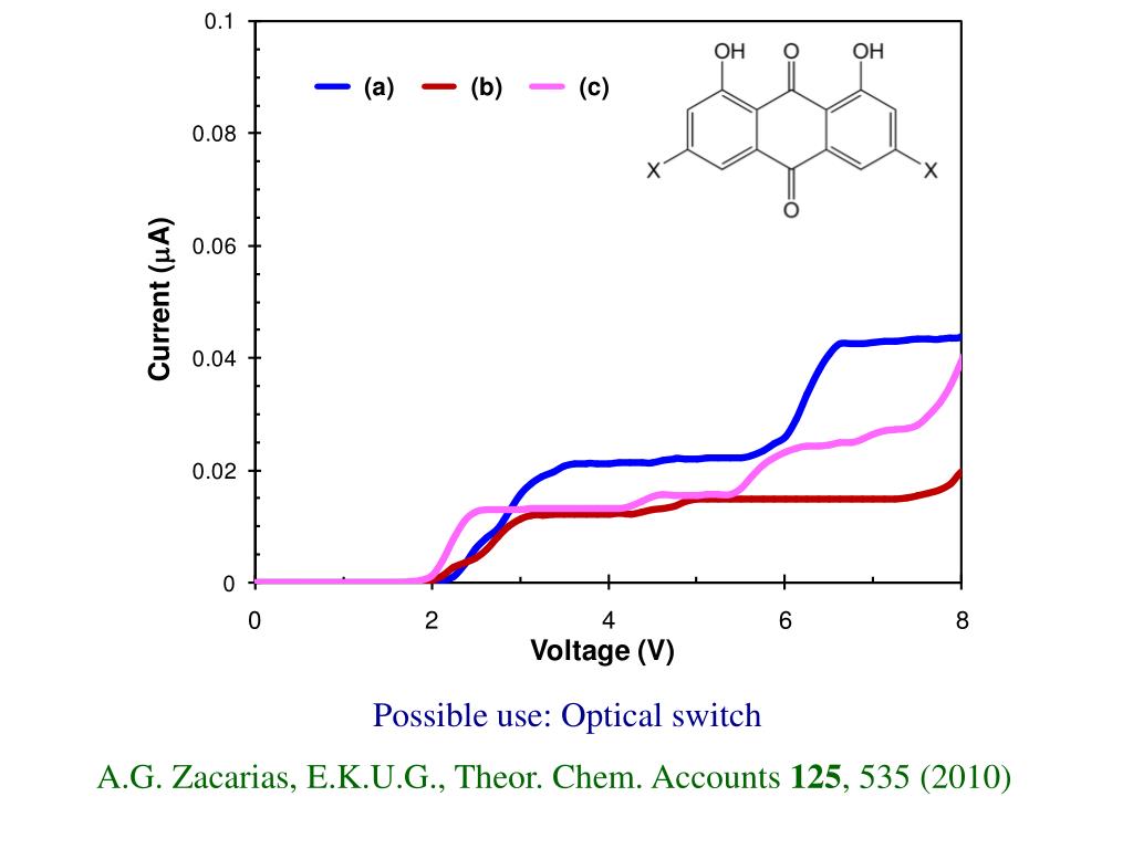Possible use: Optical switch A.G. Zacarias, E.K.U.G., Theor. Chem. Accounts 125, 535 (2010)