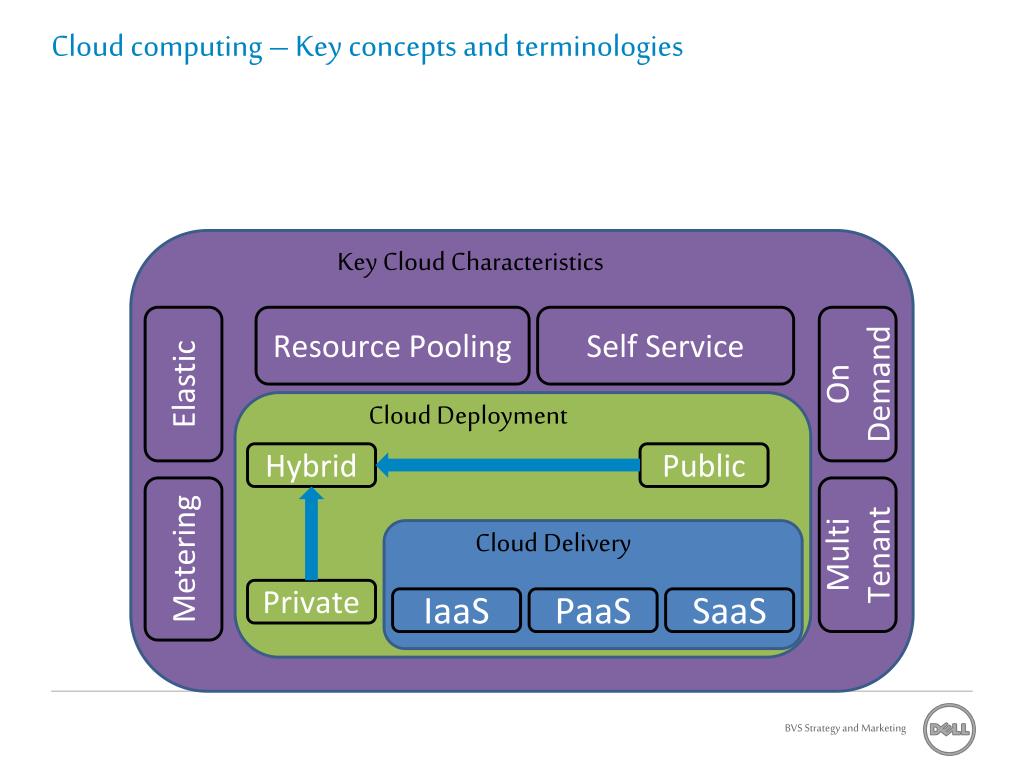 Cloud computing – Key concepts and terminologies Key Cloud Characteristics Resource Pooling Self Service Elastic On Demand Cloud Deployment Hybrid Public Multi Tenant Cloud Delivery Metering Private IaaS PaaS SaaS