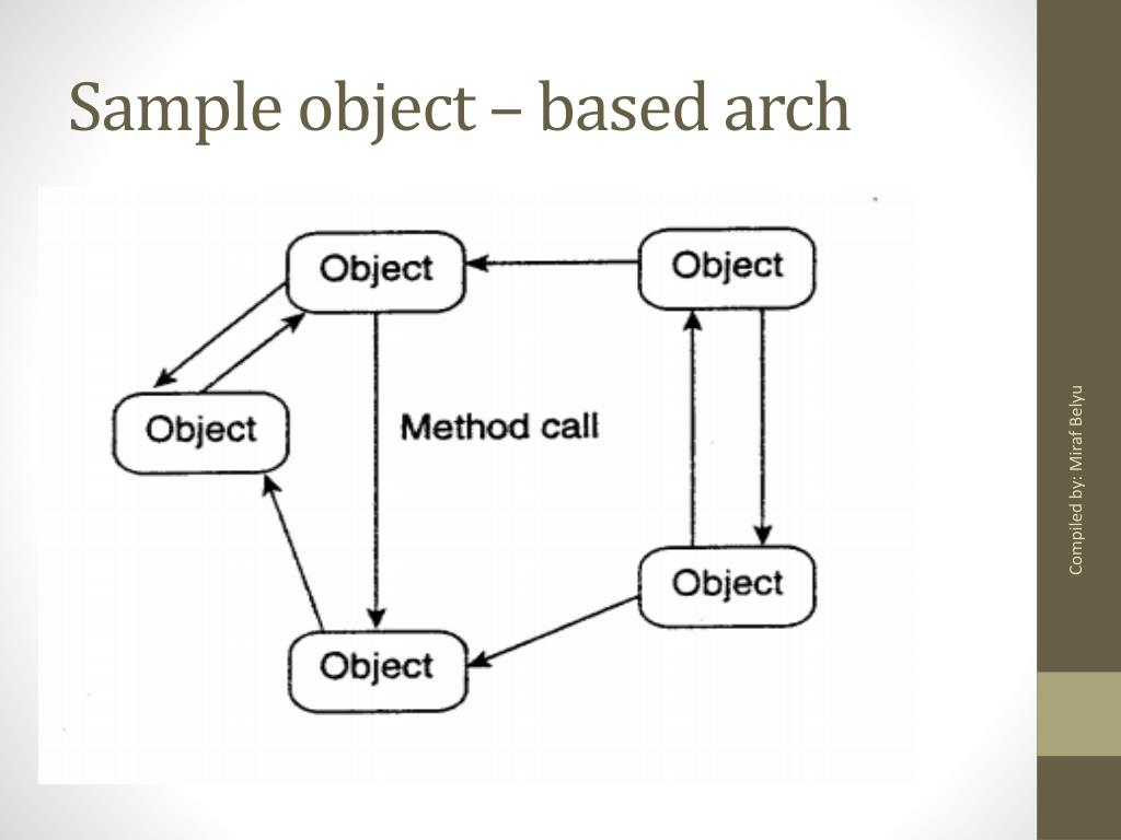 Object – based architecture • Each object corresponds to what is called a component • Components are connected through a (remote) procedure call mechanism • Matchesthe client-server system architecture. Compiled by: Miraf Belyu