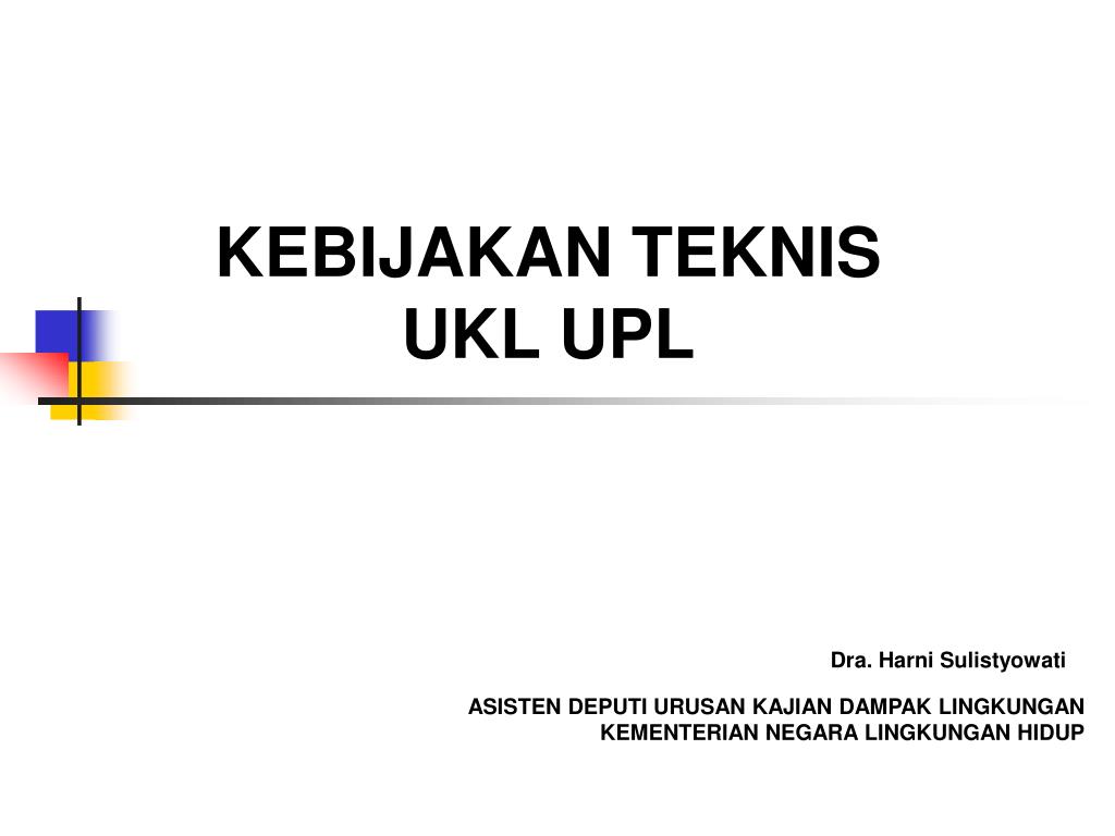 KEBIJAKAN TEKNIS UKL UPL Dra. Harni Sulistyowati ASISTEN DEPUTI URUSAN KAJIAN DAMPAK LINGKUNGAN KEMENTERIAN NEGARA LINGKUNGAN HIDUP