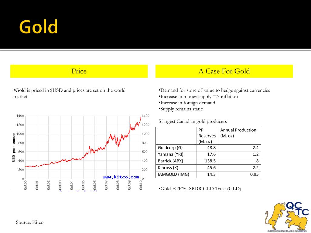 II. Who We Are Gold Price A Case For Gold • Gold is priced in $USD and prices are set on the world market • Demand for store of value to hedge against currencies • Increase in money supply => inflation • Increase in foreign demand • Supply remains static • 5 largest Canadian gold producers • Gold ETF’S: SPDR GLD Trust (GLD) Source: Kitco
