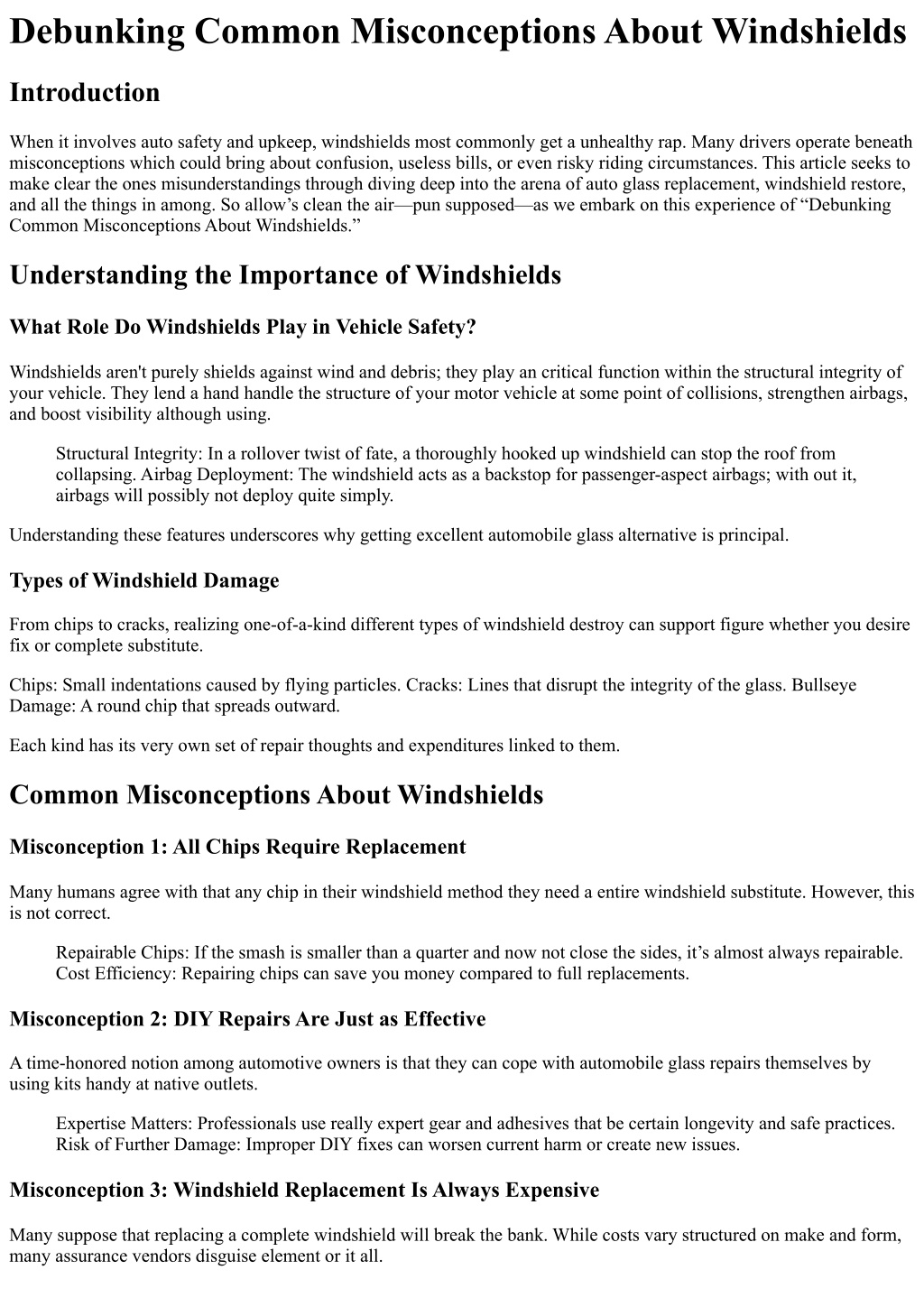 In summary, knowledge windshields' roles beyond simply insurance policy opens up avenues for more desirable protection and safeguard practices among drivers nowadays! With careful attention with regards to producers’ best requisites in addition to native rules influencing judgements surrounding automobile glass substitute tactics—one aspect continues to be clean: capabilities is capability! So next time an individual mentions “Debunking Common Misconceptions About Windshields,” you will recognise precisely what they may be talking approximately! Now armed with correct recordsdata about windshields—make sure all the time prioritize protection first whilst hitting those roads beforehand!