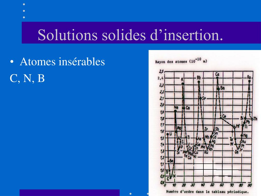 Réseaux favorables à l’insertion Le réseau CFC est le plus favorable à l’insertion et le HC le moins favorable. Le type d’empilement ABC ou ABAB a donc beaucoup d’importance. En théorie En pratique Distorsion du réseau Insertion maximum d’un atome/maille