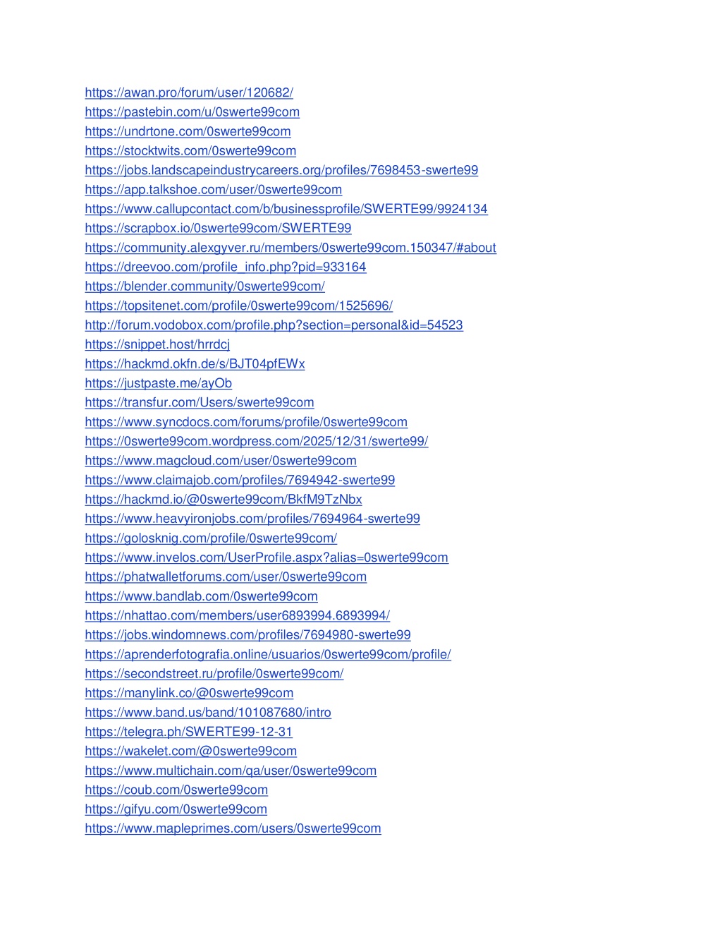 2. https://awan.pro/forum/user/120682/ https://pastebin.com/u/0swerte99com https://undrtone.com/0swerte99com https://stocktwits.com/0swerte99com https://jobs.landscapeindustrycareers.org/profiles/7698453-swerte99 https://app.talkshoe.com/user/0swerte99com https://www.callupcontact.com/b/businessprofile/SWERTE99/9924134 https://scrapbox.io/0swerte99com/SWERTE99 https://community.alexgyver.ru/members/0swerte99com.150347/#about https://dreevoo.com/profile_info.php?pid=933164 https://blender.community/0swerte99com/ https://topsitenet.com/profile/0swerte99com/1525696/ http://forum.vodobox.com/profile.php?section=personal&id=54523 https://snippet.host/hrrdcj https://hackmd.okfn.de/s/BJT04pfEWx https://justpaste.me/ayOb https://transfur.com/Users/swerte99com https://www.syncdocs.com/forums/profile/0swerte99com https://0swerte99com.wordpress.com/2025/12/31/swerte99/ https://www.magcloud.com/user/0swerte99com https://www.claimajob.com/profiles/7694942-swerte99 https://hackmd.io/@0swerte99com/BkfM9TzNbx https://www.heavyironjobs.com/profiles/7694964-swerte99 https://golosknig.com/profile/0swerte99com/ https://www.invelos.com/UserProfile.aspx?alias=0swerte99com https://phatwalletforums.com/user/0swerte99com https://www.bandlab.com/0swerte99com https://nhattao.com/members/user6893994.6893994/ https://jobs.windomnews.com/profiles/7694980-swerte99 https://aprenderfotografia.online/usuarios/0swerte99com/profile/ https://secondstreet.ru/profile/0swerte99com/ https://manylink.co/@0swerte99com https://www.band.us/band/101087680/intro https://telegra.ph/SWERTE99-12-31 https://wakelet.com/@0swerte99com https://www.multichain.com/qa/user/0swerte99com https://coub.com/0swerte99com https://gifyu.com/0swerte99com https://www.mapleprimes.com/users/0swerte99com