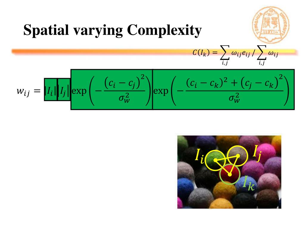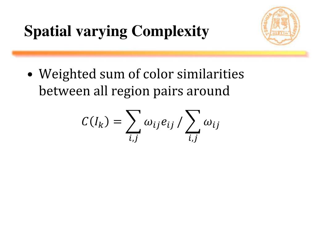 Spatial varying Complexity • Weighted sum of color similarities between all region pairs around