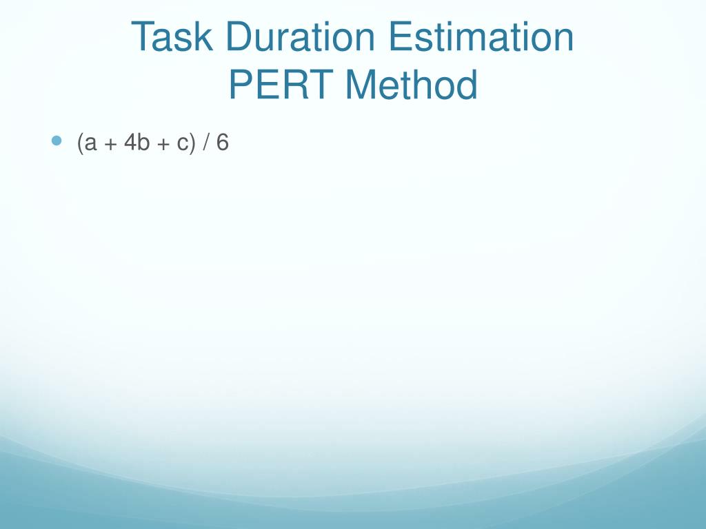 Task Duration EstimationPERT Method • (a + 4b + c) / 6