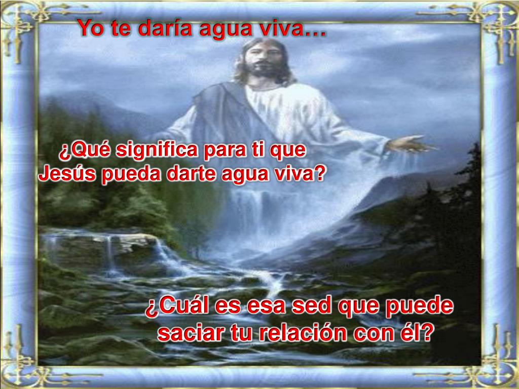 Yo te daría agua viva… ¿Qué significa para ti que Jesús pueda darte agua viva? ¿Cuál es esa sed que puede saciar tu relación con él?