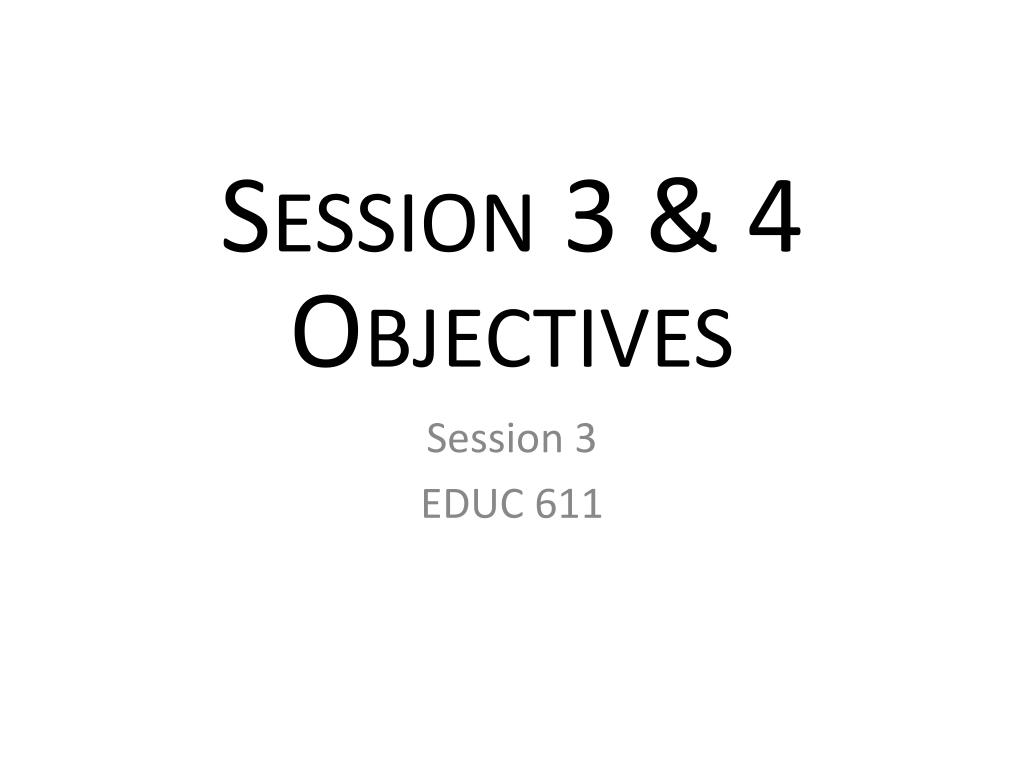 Session 3 & 4 Objectives Session 3 EDUC 611