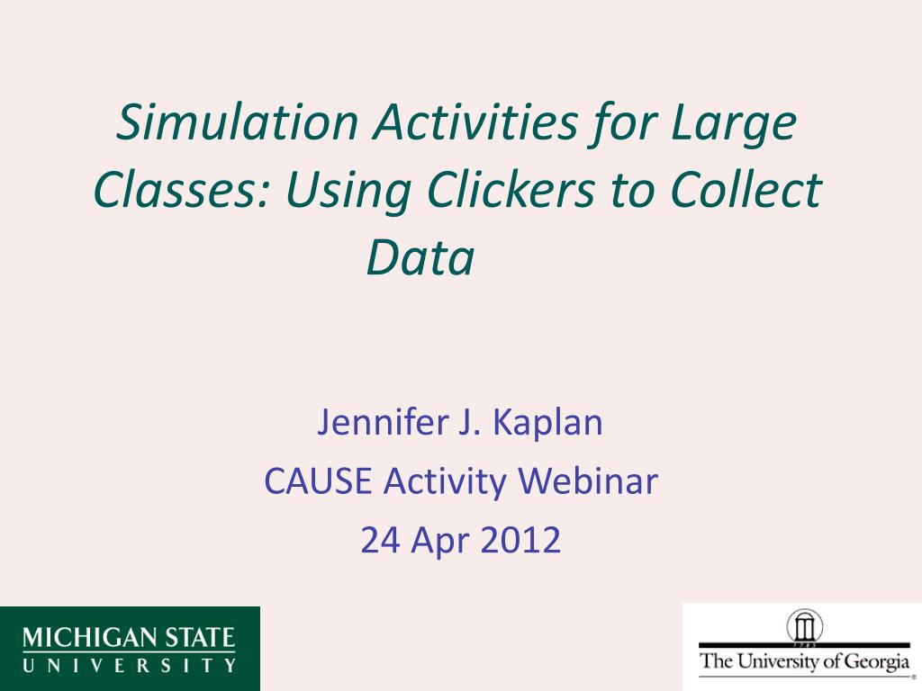 Simulation Activities for Large Classes: Using Clickers to Collect Data Jennifer J. Kaplan CAUSE Activity Webinar 24 Apr 2012
