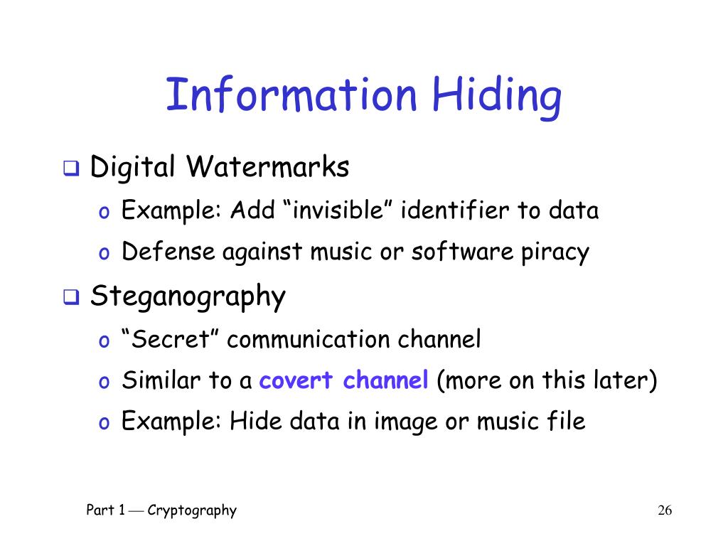 Information Hiding Part 1 Cryptography 25