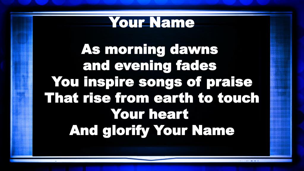Your Name As morning dawns and evening fades You inspire songs of praiseThat rise from earth to touchYour heart And glorify Your Name