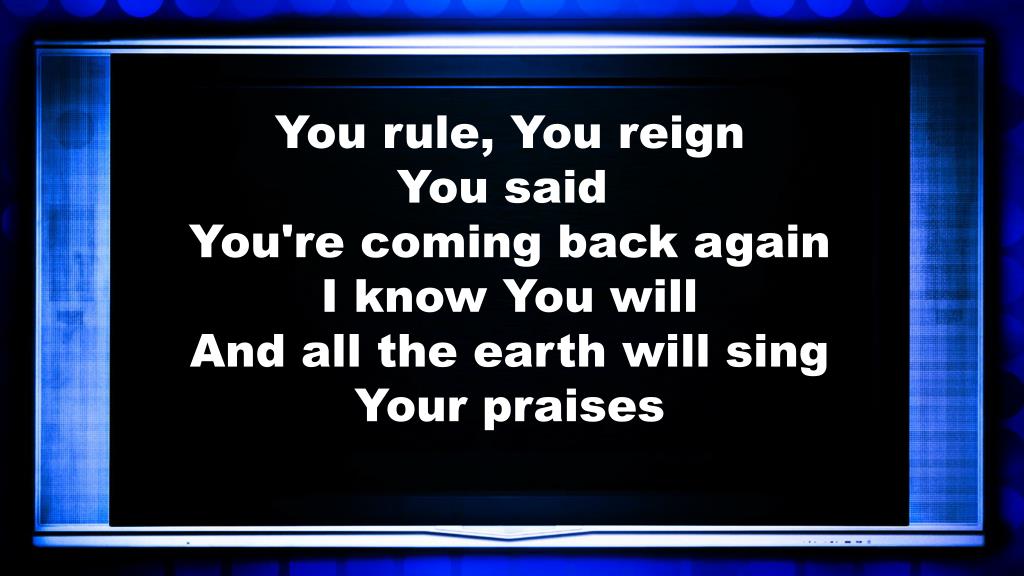 You rule, You reign You said You're coming back againI know You willAnd all the earth will singYour praises CCLI 78316