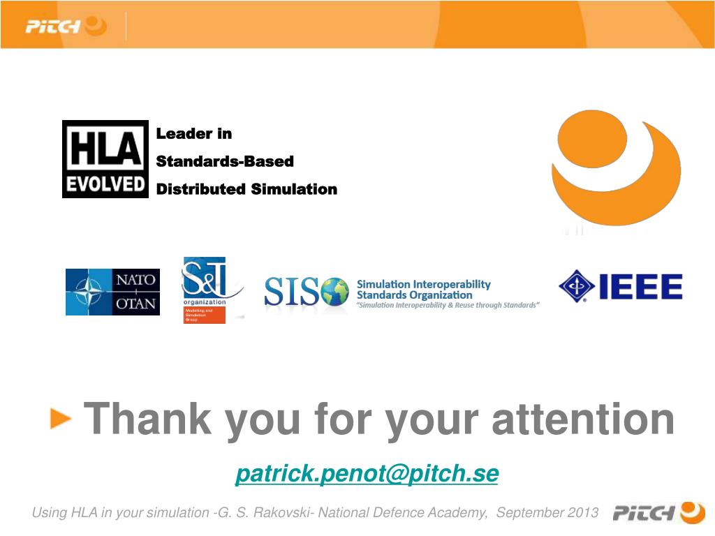 Leader in Standards-Based Distributed Simulation Thank you for your attention , patrick.penot@pitch.se