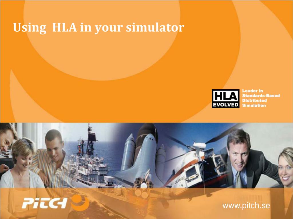 Who is Pitch Founded in Linköping, Sweden, in 1991 • World leader for distributed simulation (products, services, training) • Standard from SISO, IEEE, NATO • SOA – Service Oriented Architecture • Role and content based security technologies • FEDEP/DSEEP process • More largest offer for interoperability products base • Performance • Robustness • Easy to Use • Strong focus on R&D and innovation • M Bjorn Möller, Vice Chair of HLA Evolved • Develops and delivers cutting-edge, industry-strength products • International R&D leader with several research awards and certifications