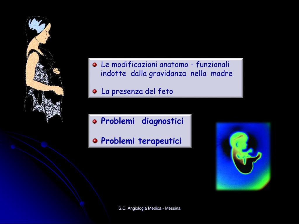 Le modificazioni anatomo - funzionali • indotte dalla gravidanza nella madre • La presenza del feto • Problemi diagnostici • Problemi terapeutici S.C. Angiologia Medica - Messina