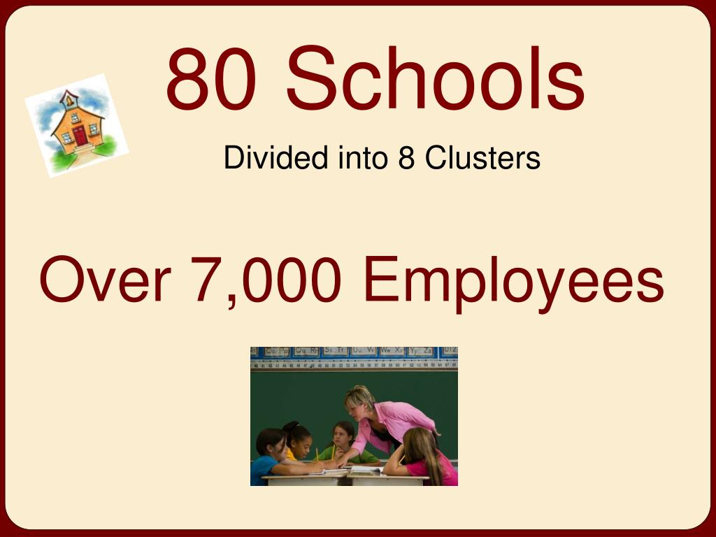 Divided into 8 Clusters 80 Schools Over 7,000 Employees