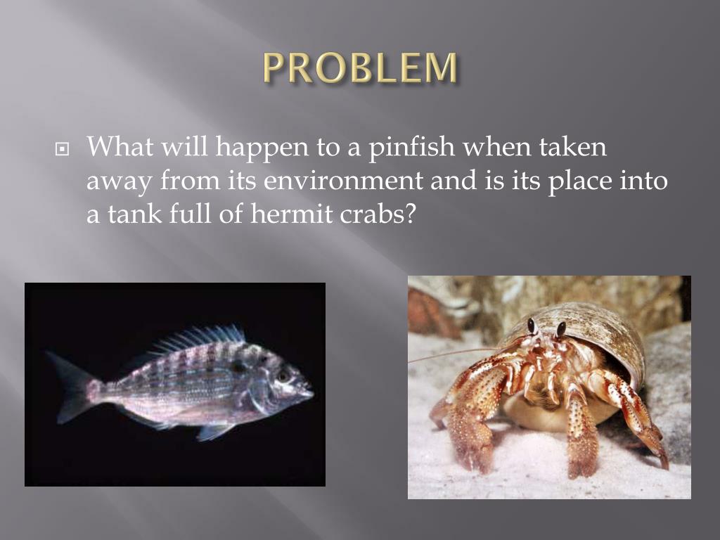 PROBLEM • What will happen to a pinfish when taken away from its environment and is its place into a tank full of hermit crabs?