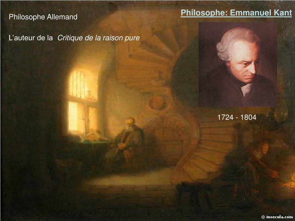 Philosophe: Emmanuel Kant Philosophe Allemand L’auteur de la Critique de la raison pure 1724 - 1804