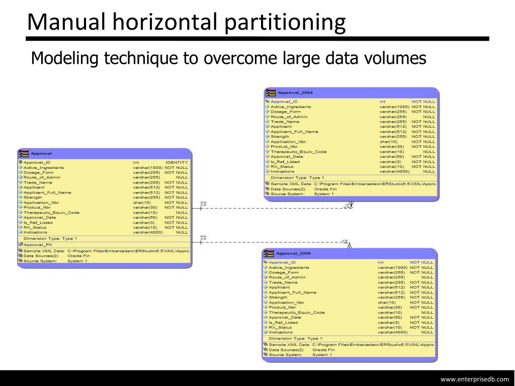 Use a modeling tool • Don’t use 3rd normal form • Manual partition but… • Let the DB do the heavy lifting www.enterprisedb.com