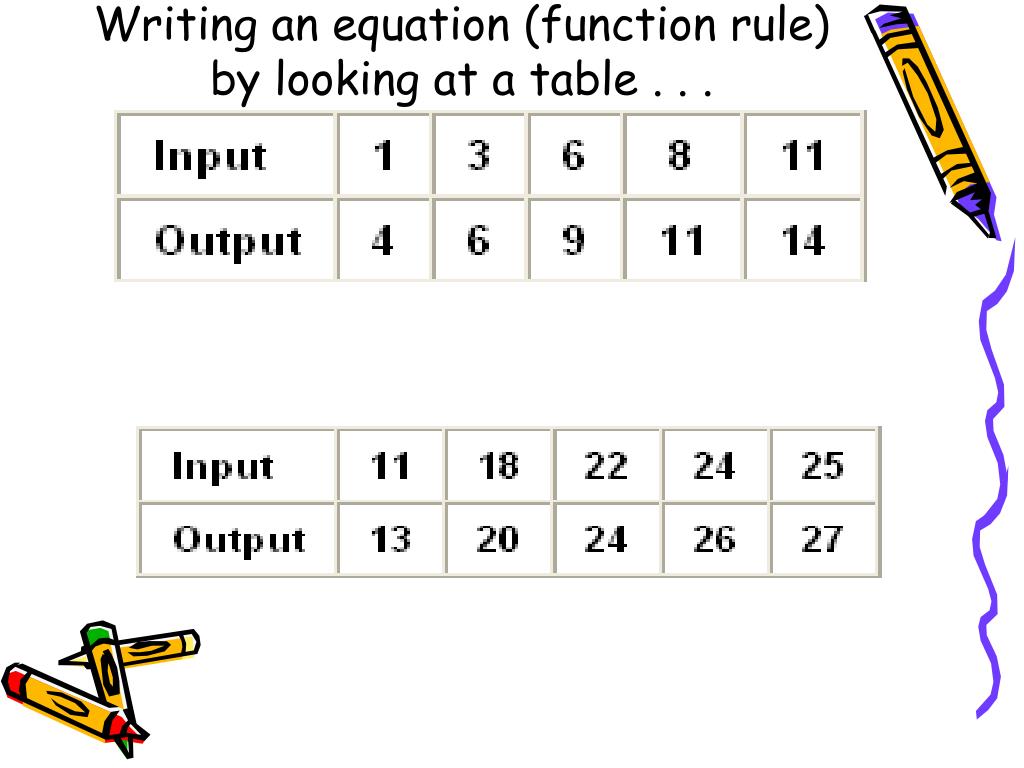 Writing an equation (function rule) by looking at a table . . .
